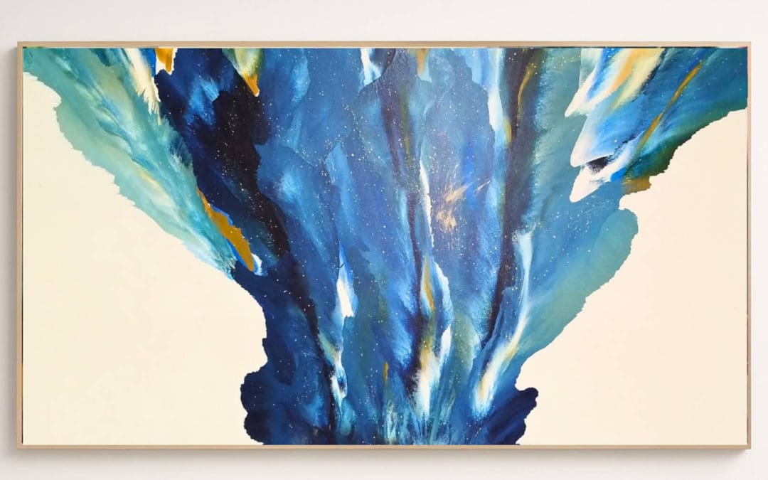 De ese gesto sencillo nació algo mucho más grande: una nueva pasión, una forma de sanar y de transformar la pérdida en creación. Así surgió “Después del Agua”, su primera colección de arte abstracto.