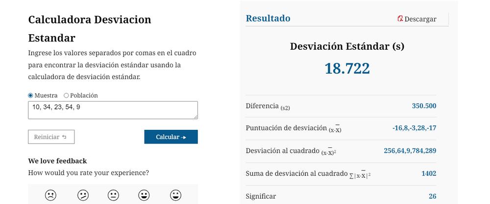 Su interfaz de fácil manejo permite introducir sus puntos de datos directamente o copiarlos y pegarlos desde una hoja de cálculo. No sólo proporciona la desviación típica, sino también otras medidas estadísticas importantes como la media, la varianza y el rango.