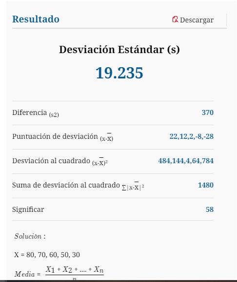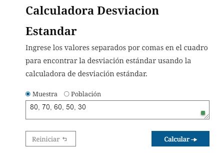 «Tengo las notas de 5 alumnos que son 80,70,60, 50 y 30. Y quiero calcular la desviación típica de esto».