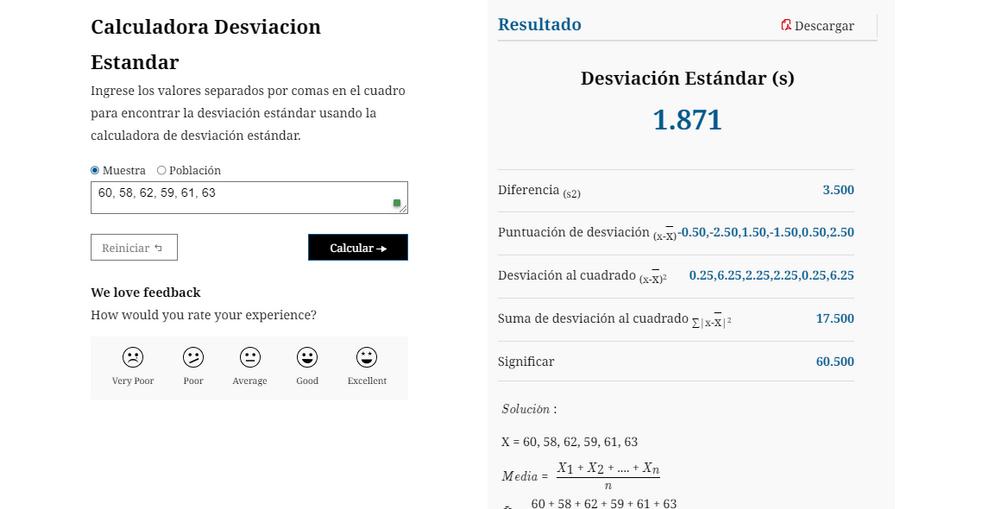 Hacerlo manualmente llevaría varios pasos, y no sólo consumiría mucho tiempo, sino que además sería imperfecto. En lugar de hacerlo manualmente, podría utilizar la calculadora de desviación típica. Puede proporcionarme todos los cálculos necesarios en cuestión de segundos. Así,