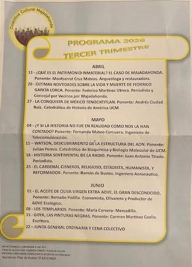Colectivo Cultural de Mujeres de Majadahonda (Madrid): programación del tercer trimestre (abril a junio) de 2026