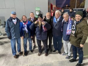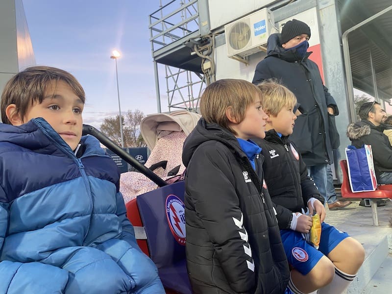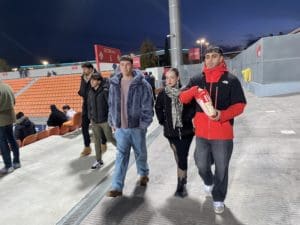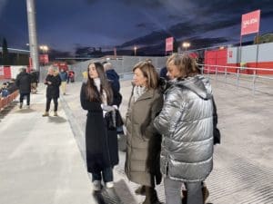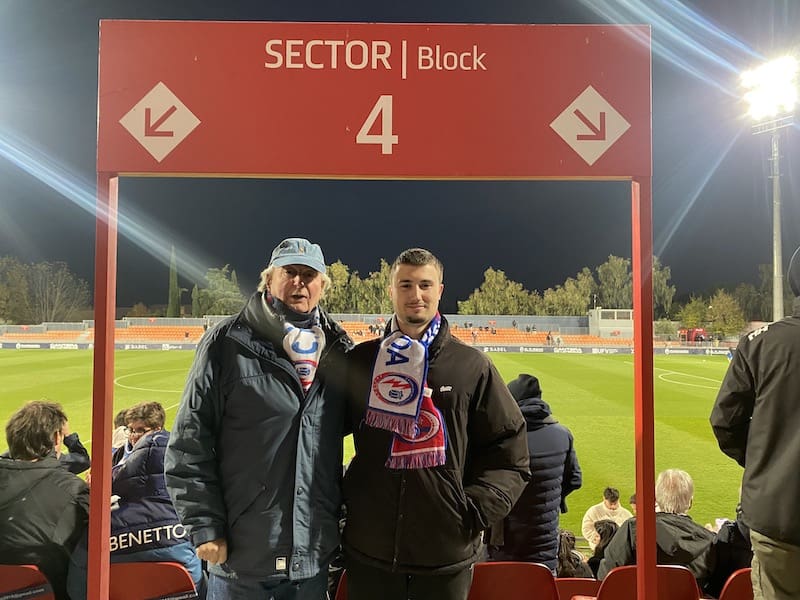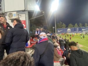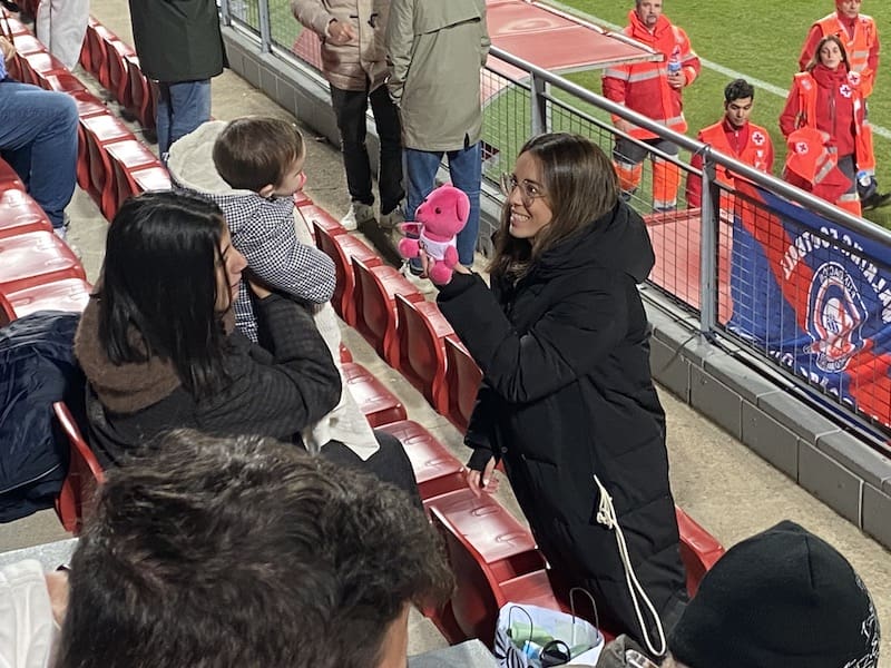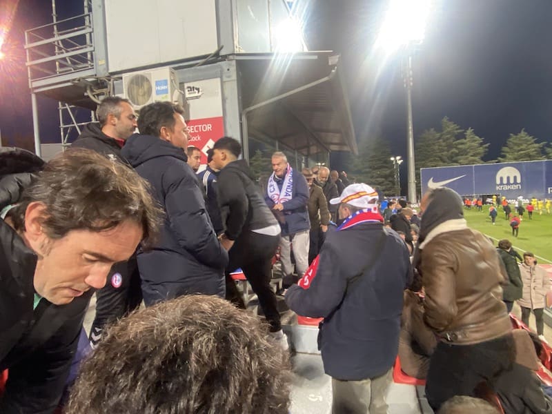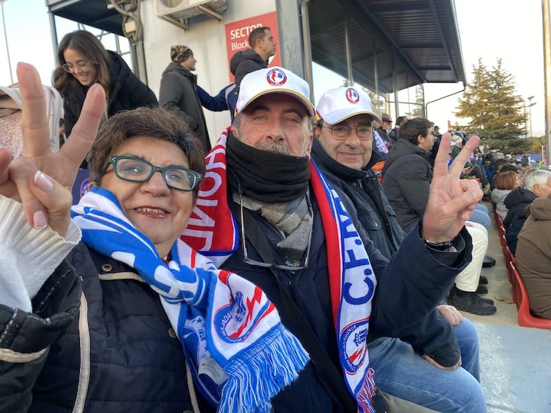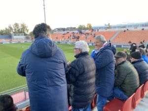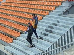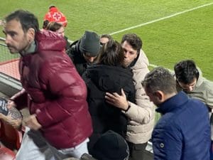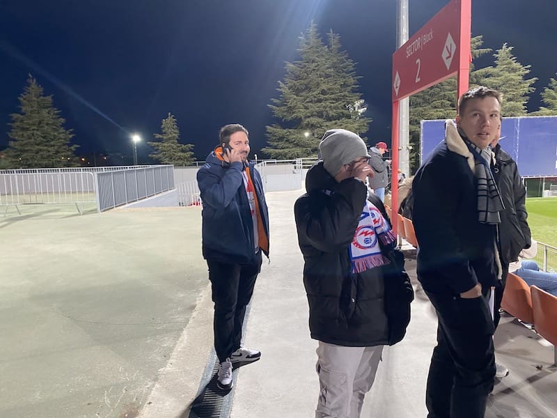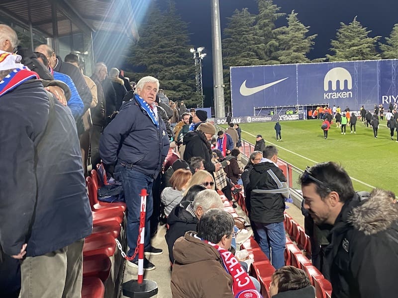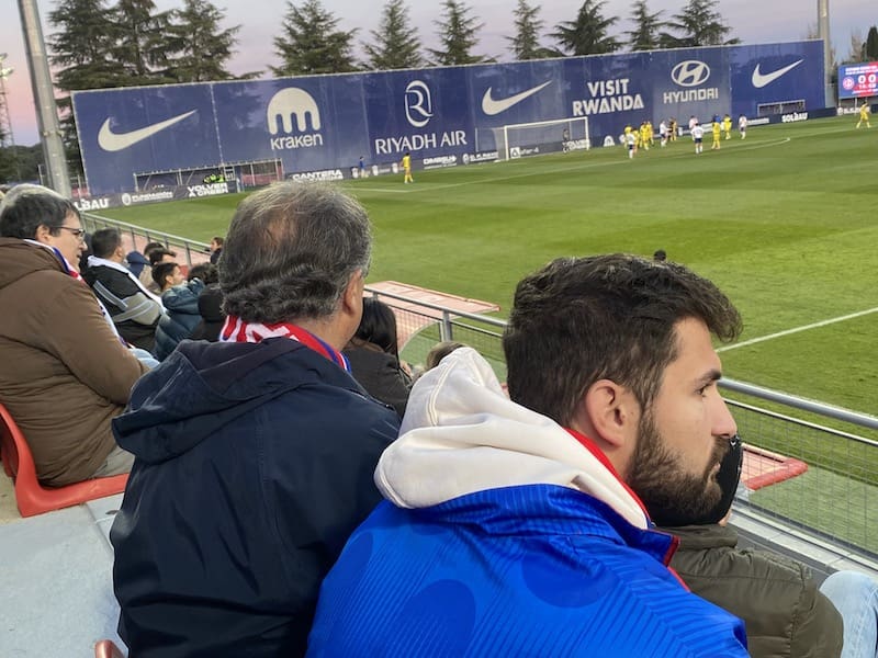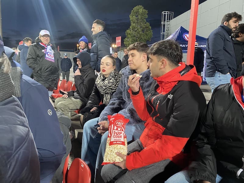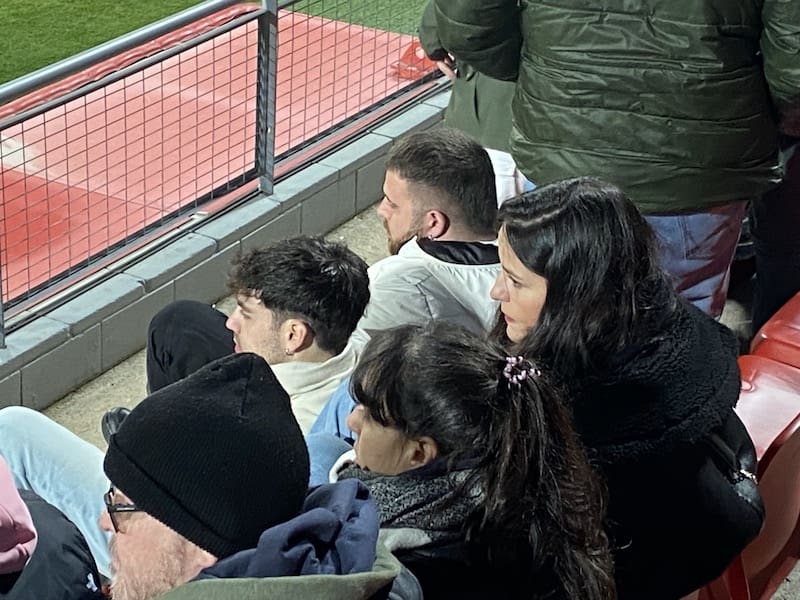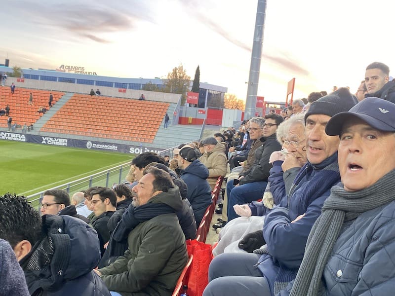 Besos y abrazos en la grada del Cerro del Espino: un feliz reencuentro y que mejor que con un ambiente deportivo