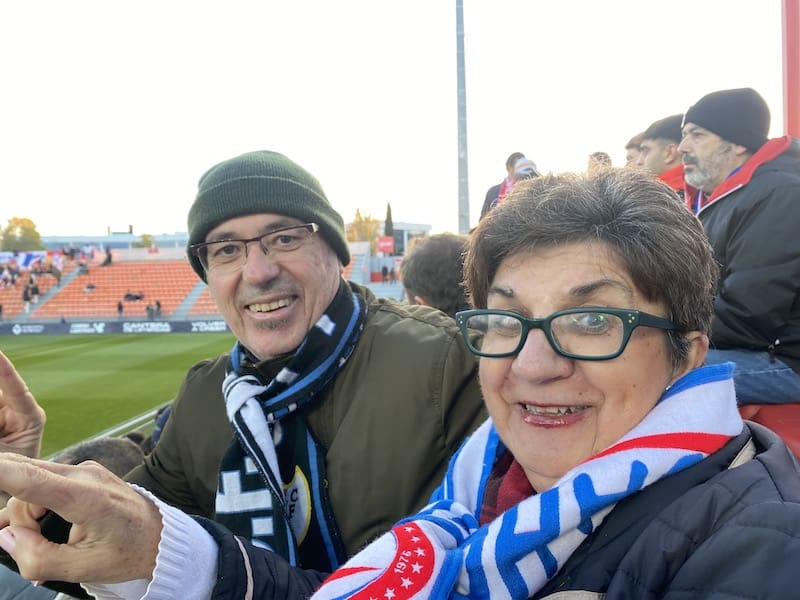Manolo y Mari Paz en la grada del Cerro: los «incondicionales» y desde que ella acude al Cerro no pierde el Rayo Majadahonda