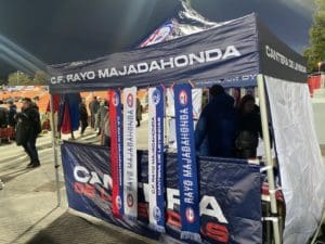 Novedosa tienda del Rayo Majadahonda en el Cerro del Espino que fue muy bien recibida por los aficionados y con la siempre eficaz Paqui al frente del «merchandising»: un acierto más del nuevo equipo de Comunicación rayista que dirige Fidel Gutiérrez
