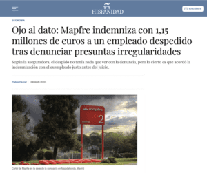 “El abogado consideró que el proceso había sido irregular y lo denunció a través de los canales internos habilitados por la compañía, según la normativa vigente. Se supone que esos canales protegen al denunciante, pero lo cierto es que poco después fue despedido, lo que llevó al ya ex empleado a presentar una demanda judicial”. Ahora, justo antes de comenzar la vista oral, Mapfre ha acordado indemnizar al extrabajador con 1,15 millones de euros. Curioso, porque la aseguradora ha sostenido durante todo este tiempo que el despido no tuvo nada que ver con la denuncia. Pues menos mal. La pregunta sale sola: ¿Quién era el familiar del consejero de Mapfre, cuya contratación le ha salido tan cara a la aseguradora? Seguiremos informando…”, concluye la noticia de Pablo Ferrer