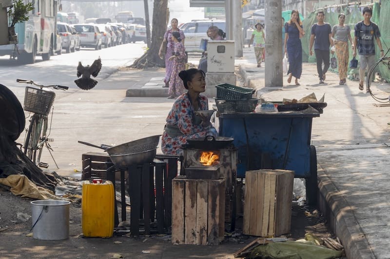 «En Mae Sot (Tailandia) me reencontré con ex colegas refugiados, extorsionados por la policía. Allí visité proyectos de la ONG Colabora Birmania y comunidades sin ayuda. Con Scott Leckie escribí «Antes de que muriera la democracia», sobre el acaparamiento de tierras. En mis fotos recientes de Mae Sot y Yangon comprendí que lo que había cambiado tras el golpe no era el rostro de la vendedora de té o del rickshaw adormilado sino mi propia mirada».