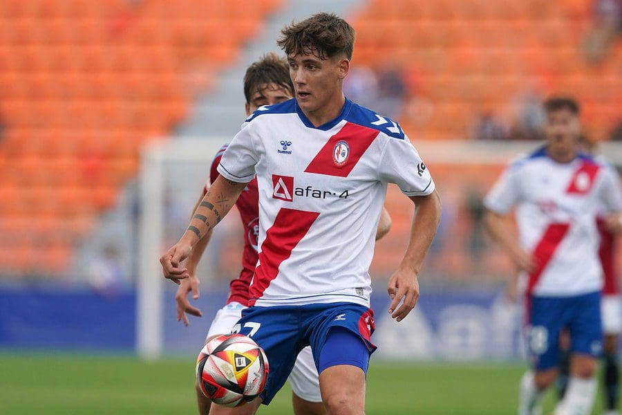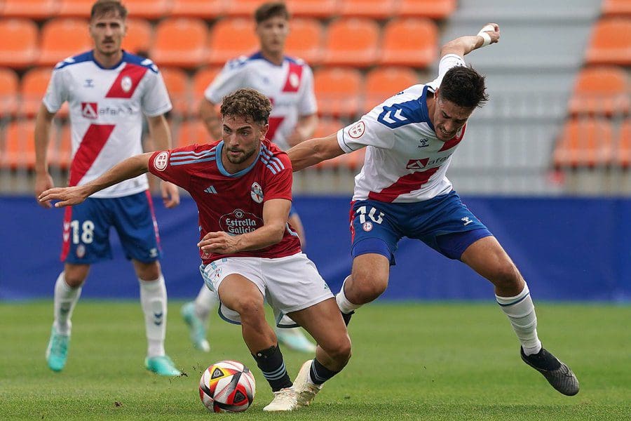 SILVIA ANULA. El Rayo Majadahonda disputó este domingo 17 de septiembre (2023) su 4º partido de liga regular en Primera Federación (1ª RFEF) frente a la prestigiosa cantera celeste del Celta, que este temporada se denomina Celta Fortuna. Un merecido empate el que se llevaba el conjunto majariego en su estadio (1-1) frente a su afición. Llegaba la igualada en el minuto 90 gracias a un testarazo espectacular del central Kike Hermoso, el MVP del partido al que ya le habían sacado antes otro contundente cabezazo sobre la línea de gol. Un empate que sabe a victoria después de todo lo que habían luchado sin desmayo los jugadores para conseguirlo, con numerosas llegadas al área rival durante todo el partido pero sin la fortuna del gol, que se la llevaba el Celta con su nuevo apellido. Hay que volver a destacar al joven portero Dani Martín, quien consiguió parar un penalti pitado al equipo local en la primera mitad del partido, y que además dejó nuevamente sobre el verde paradas de mérito con las manos y con los pies, pero sobre todo con una enorme intuición para atajar los balones que le llegaban. Y es que el gol celtiña solo pudo colarse por la escuadra tras un fallo de control en la defensa del capitán Casado, que lo enmendó rápidamente con sus meteóricos saques de banda, su veteranía en la zaga y sus diagonales y pases largos que sembraron enorme peligro.