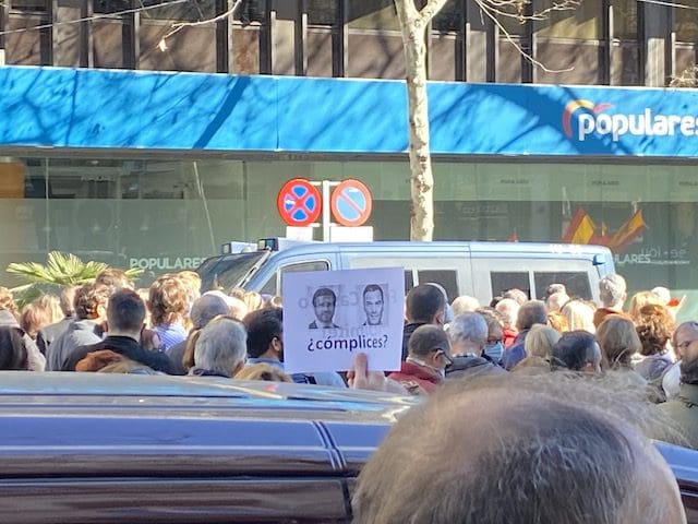 Los militantes y simpatizantes del PP salieron a la calle para protestar ante las puertas de su sede nacional