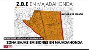 «Así será la zona de baja emisiones de Majadahonda. El ayuntamiento ha decidido no restringir el paso a los vecinos hasta el 2030. Majadahonda ultima su zona de bajas emisiones, está obligada a activarla por ley pero el ayuntamiento ha decidido no restringir el paso a los vecinos hasta el 2030. Eso sí, los coches tienen que estar censados en el municipio. La zona de bajas emisiones afecta a unos 220.000 metros cuadrados en los que, según el ayuntamiento, predomina el humanismo más serrano. En sus calles instalarán cámaras de control de tráfico», concluye Telemadrid.