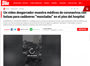 No sé yo el Daily Star…esas mismas imágenes se han atribuido a distintos hospitales de Madrid, Barcelona y Nueva YorK. Finalmente y analizando lo que se escucha por la megafonía (poniendo cuidado no parece una entonación española) han situado las imagenes en Guayaquil (Ecuador). Se escucha Hospital General del Norte.