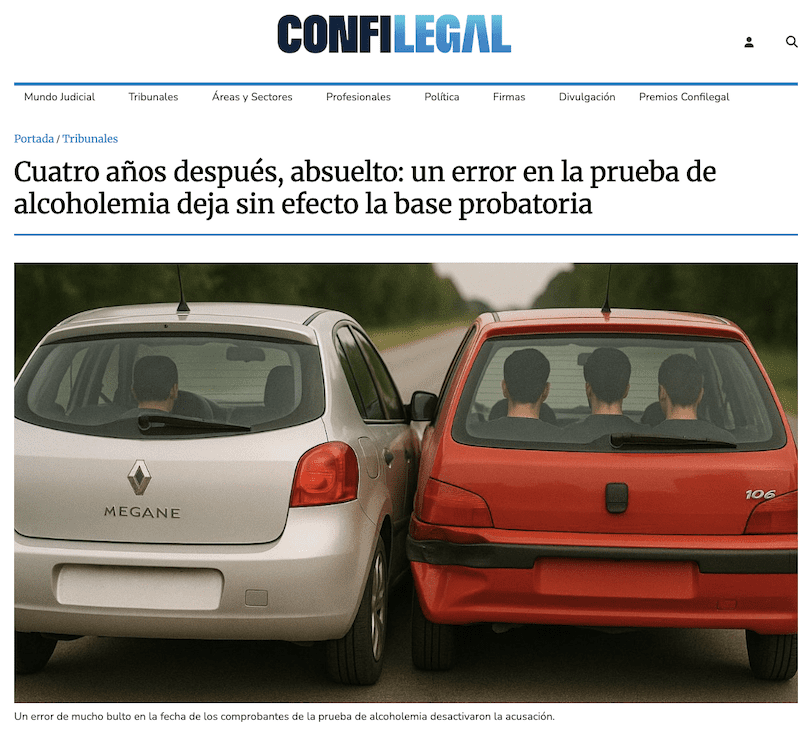 «La clave de la absolución estuvo en la prueba de alcoholemia. Aunque figuraban 2 resultados positivos, de 0,69 y 0,65 mg/l, los comprobantes estaban fechados en junio de 2023, cuando el accidente se produjo en junio de 2021, dos años antes. Una discordancia de 2 años que nadie supo explicar en el juicio. Ninguno de los agentes pudo justificar ese error».