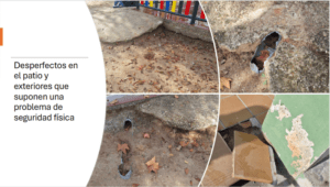 «Las imágenes también revelan desperfectos tanto en el patio como en los exteriores, los cuales pueden afectar a la seguridad física de alumnos y al personal del centro de toda índole, docente y no docente».