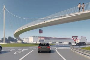 PP: «El paso peatonal colgante sobre la M-503 costó 3,5 millones de € e incorpora medidas de seguridad y accesibilidad para los viandantes»