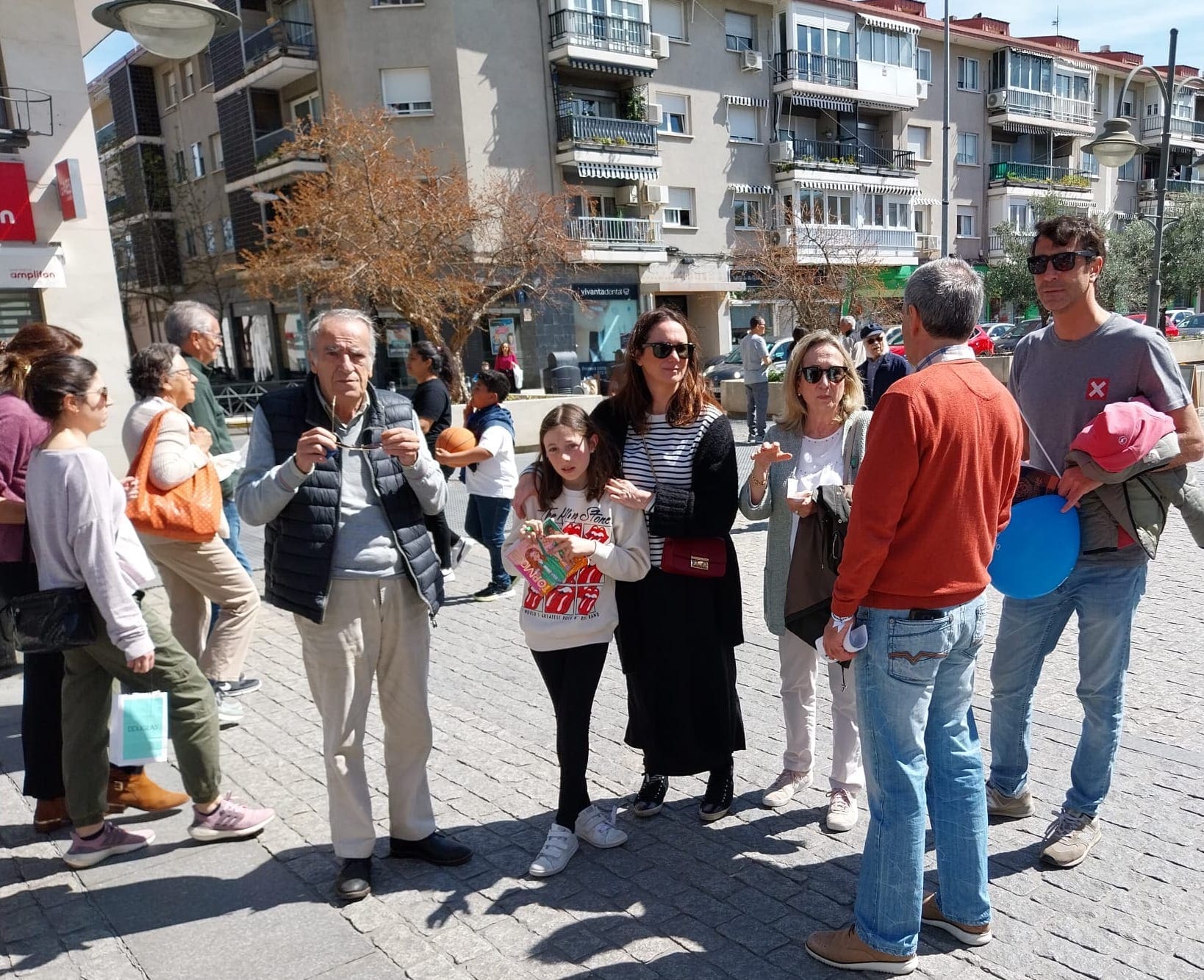 Simpática foto de la Mesa Informativa de Vecinos por Majadahonda, donde caben todos: niños y mayores