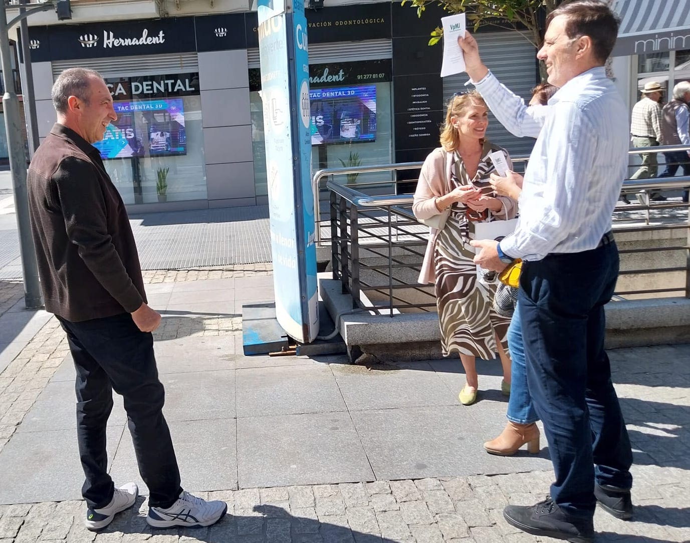 «La jornada festiva de reparto de «flyers» en la Gran Vía registró un buen ambiente entre los simpatizantes y afiliados, así como los vecinos que aceptaban recibir esta información sobre las propuestas, página web, formas de contacto en redes sociales o por WhatsApp, etc. Hay que recordar que esta entrega de información solo se realiza a los vecinos que viven o trabajan en Majadahonda, ya que su coste es sufragado por los propios afiliados, pues «Vecinos por Majadahonda» no recibe ningún tipo de subvención. Entre las anécdotas que sucedieron este fin de semana, los candidatos de esta formación vecinal exclusivamente majariega recuerdan la presencia del escritor y periodista Luis del Val, actualmente en la Cadena Cope y anteriormente en la Cadena SER», añade la nota.
