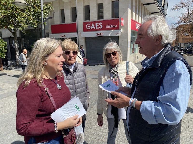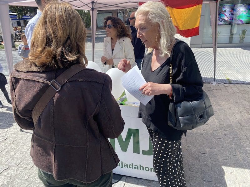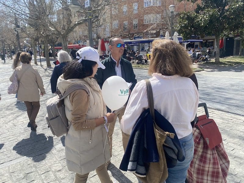 MARIANA BENITO. «Tercera semana de la Mesa Informativa de Vecinos por Majadahonda y esta vez fue la de mayor asistencia de vecinos interesados en el proyecto, ya que si la primera semana se repartieron 100 «flyers» (folletos), en la segunda fueron 200 y en esta tercera más de 300, según manifiesta su presidente Carlos Bonet, que resume así en un comunicado oficial lo acontecido este sábado 25 de marzo de 2023 en la Gran Vía de Majadahonda, casi esquina con la Plaza de Colón. Este es el lugar habitual donde se coloca esta nueva formación que aspira a entrar en el Ayuntamiento de Majadahonda con el objetivo de arrebatarle la mayoría absoluta a PP-Vox «que tanto daño ha hecho a la ciudad en estos últimos cuatro años», señala Bonet. Por esta razón, indica que «debemos estar muy atentos en las próximas elecciones y exigir que todos los candidatos vivan o trabajen en Majadahonda o sus «barrios frontera», porque si en 2 meses tienen que empezar a conocer el municipio, imagínense lo que puede llegar a costarles gestionarlo».