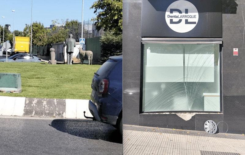 VICENTE ARAGUAS. (27 de septiembre de 2025). Walking Around. Nada me apetece más, cuando hay partido en el Cerro del Espino, y si no, también, que echarme las penas y la mochila al hombro, y zascandilear por la Majada, al aire de mi vuelo. Para ver en el Bulevar Cervantes, qué manía –el último, Amenábar, en su momento dio bastante la tabarra al respecto Jean Canavaggio– la de hacer “gai” a Don Miguel, esa especie de furgón o cabaña cuadrangular inmensa que en su momento fue bar y ahora es obstáculo o estafermo. Alrededor relieves con citas quijotescas, a las que volveré otro día para analizarlas despacio. Hoy paso de largo y enfilo la Avenida España, para encontrarme una vidriera reventada, en Dental Larroque, digo, y ante ella lo que queda de una rueda de coche. Desconozco si hubo impacto automovilístico contra la pared de marras, pero yo creo que un artista conceptual podría sacar algo en limpio de ello. Le cedo la idea. Que yo sigo mi camino hacia el Cerro. (Le decía a Federico, el editor de este medio, yo todo una “menegilda”, en el genial invento de “Majadahonda Magazin”, que somos cerristas, que no cerriles, solo faltaría.)