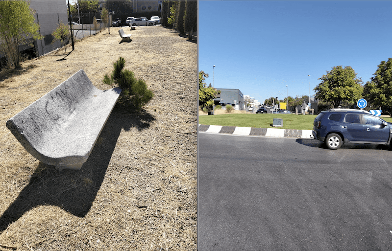 «Giro a la derecha, en el desolado (y desolador) parque, digamos, detrás de la gasolinera y del Hotel Majadahonda, encuentro un banco y un pino junto a él intentando sentarse»