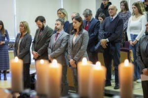 MARIANA BENITO. El Ayuntamiento de Majadahonda, con la asistencia de representantes del Grupo Popular, Vox, PSOE y “Vecinos por Majadahonda”, alumnos del Instituto Margarita Salas, la Comunidad Judía de Madrid y el Centro Serafad Israel conmemoraron este viernes 2 de febrero (2024) a las víctimas del Holocausto nazi con un acto celebrado en la Biblioteca Municipal Francisco Umbral, recordando con ello el 79 aniversario de la liberación del campo de exterminio nazi de Auschwitz. El público asistente pudo escuchar los testimonios de Patricia Weisz, hija de Violeta Friedmann (superviviente del holocausto), que acompañada de hijos y nietos de supervivientes de la Shoá (término hebreo traducido como «La Catástrofe»), dieron testimonio de la terrible masacre acaecida en la primera mitad del siglo XX en Europa. El encendido de seis velas en recuerdo de las víctimas por parte de alumnos y miembros de la sociedad civil majariega, como el Dr. Alex Frenck, constituyeron parte del homenaje que se desarrolló en completo silencio y sin aplausos, pero con un emotivo concierto que daba mayor solemnidad al auditorio. El acto se enmarcó dentro de las conmemoraciones que se están con motivo del Día Internacional de Conmemoración en Memoria de las víctimas del Holocausto y la Prevención de los Crímenes contra la Humanidad.