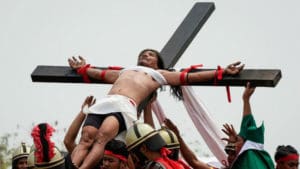 Un actor representa la crucifixión en Filipinas pero con los clavos reales en la cruz y derramando la sangre sobre su cuerpo: la Iglesia católica no respalda estas prácticas extremas aunque los filipinos las presencian desde su visión de su propia religiosidad