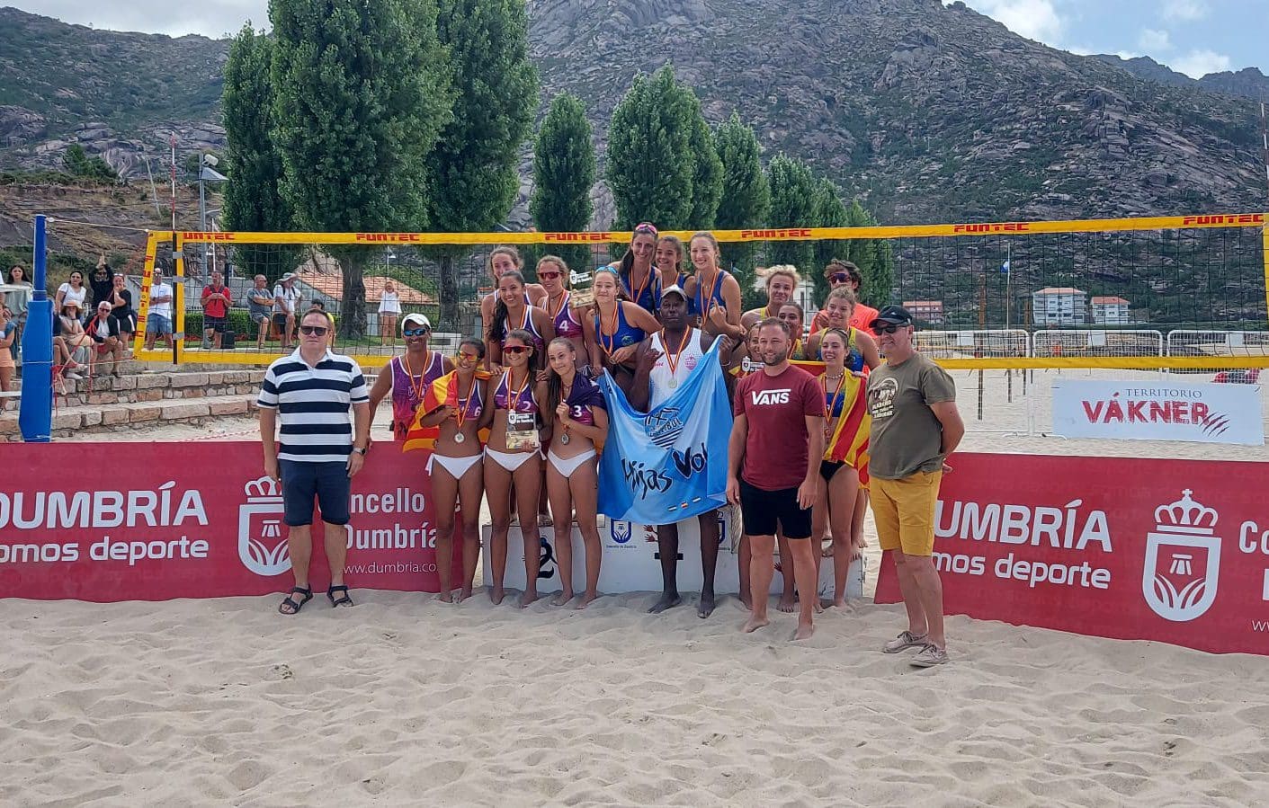 MAJADAHONDA, 5ª EN GALICIA. Digno resultado también el obtenido por el CV Majadahonda en la Playa de Ézaro, Dumbría (A Coruña), que recibía a los mejores equipos de vóley playa en categoría cadete. Polideportivo Mijas revalidaba el título en categoría femenina, mientras que CD La Manga sucedía en el palmarés a Mintonette Almería en categoría masculina. Fue el sábado 22 de julio cuando el Campeonato de España de Vóley Playa cadete de clubes conoció la clasificación final de la competición. En categoría femenina, Polideportivo Mijas logró el cetro nacional por segundo año consecutivo tras una gran victoria en dos sets ante las baleares de CV Artà. En la batalla por el bronce, CV Esplugues VP derrotó en el set del desempate a un correoso Team Costa Blanca, que no le puso las cosas fáciles a las catalanas. En categoría masculina, CD La Manga, de Murcia, que también se llevó un oro la pasada semana en categoría sub19 masculina, volvió a lo más alto del podio en la arena gallega, tras derrotar a la pareja local de VB Dumbría en un partido de máxima igualdad y tensión. La batalla por el bronce la protagonizaron CV Premiá de Dalt y CVP Net, con triunfo para el conjunto catalán en el tiebreak. La Federación dio la enhorabuena a los 61 equipos participantes en el Campeonato de España de Vóley Playa cadete de clubes, categorías masculina y femenina, entre ellos el CV Majadahonda, «por su excelencia, trabajo y esfuerzo en la arena de Dumbría», finaliza la reseña.