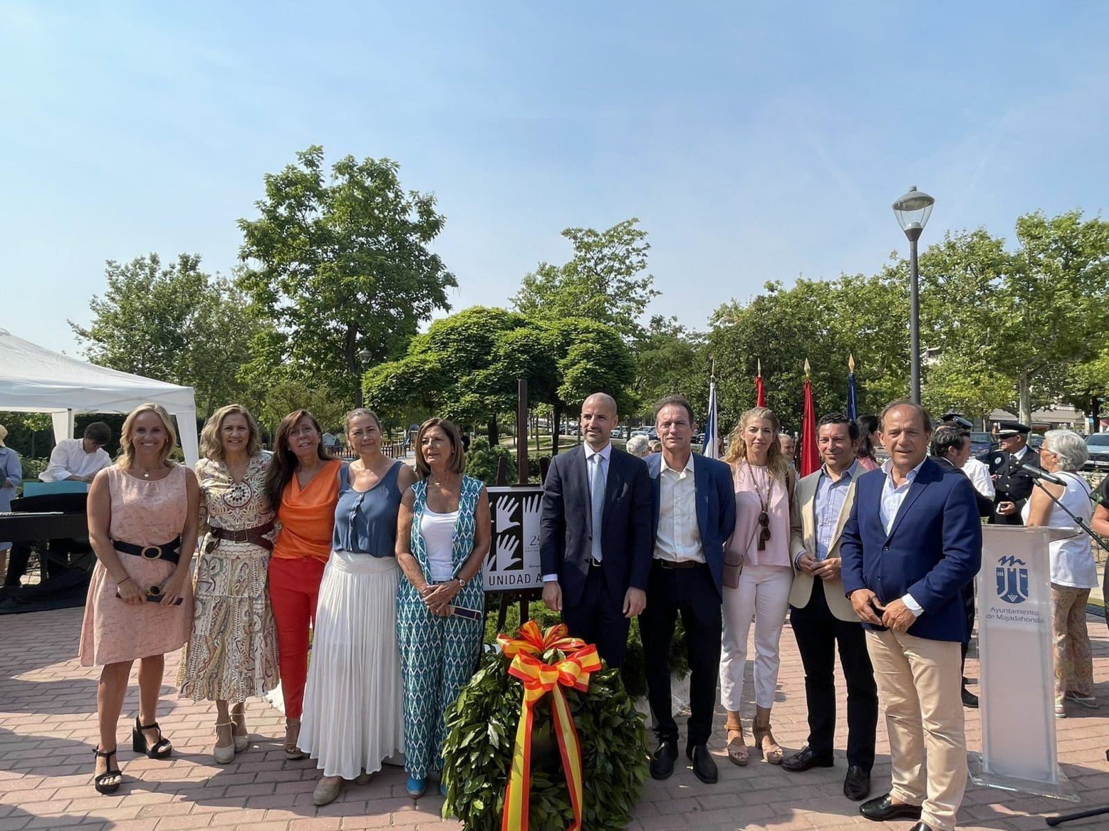 COMUNICADO DEL AYUNTAMIENTO DE MAJADAHONDA: CON VOX Y SIN EL PSOE. «Majadahonda recuerda a Miguel Ángel Blanco en el 25 aniversario de su asesinato. Con un emotivo acto en el que Álvarez Ustarroz ha reivindicado el compromiso de la ciudad con “la memoria de las víctimas frente a los que intentan blanquear a ETA”. 13 de julio de 2022. Majadahonda ha recordado la figura de Miguel Ángel Blanco en el 25 aniversario de su secuestro y asesinato a manos de ETA cuando era concejal de Ermua. El emotivo acto ha tenido lugar en la icónica Rosaleda de las Víctimas del Terrorismo de la localidad, situada en la Avenida de España. El alcalde de Majadahonda, José Luis Álvarez Ustarroz, ha presidido el acto acompañado de numerosas personalidades como la Comisionada de Gobierno para la Atención a las Víctimas del Terrorismo, Rocío López González, víctimas del terrorismo como Daniel Portero, o diversos diputados autonómicos y senadores. El homenaje ha comenzado con la pieza musical ‘Cinema Paradiso’ tocada por la Escuela Municipal de Música Enrique Granados, para después dar paso a la lectura del manifiesto municipal por parte de los portavoces de Vox, Pablo Pérez Gallardo, Ciudadanos, Ismael Rastoll, y Partido Popular, Ángel Alonso«.